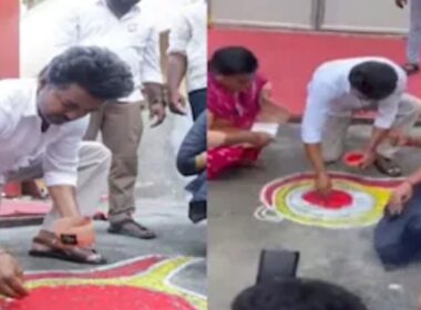 பெரம்பூரில் கோலம் போட்டு வாக்கு சேகரித்த விஜய்…
